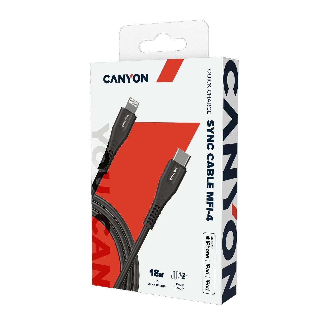 Кабель Canyon MFI-4, USB-C to Lightning, для зарядки и передачи данных, 1,2 м, MFI, Черный, CNS-MFIC4B