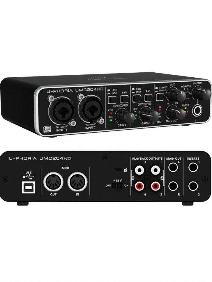 Аудиоинтерфейс Behringer UMC204HD внешний USB / MIDI для записи и воспроизведения звука на компьютере (PC / MAC)