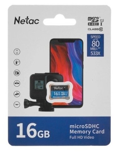 Карта памяти microSDHC UHS-I U1 NETAC P500 16 ГБ, 80 МБ/с, Class 10, NT02P500STN-016G-R, 1 шт., пер