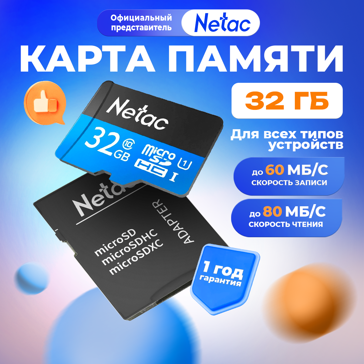 Карта памяти microSDHC UHS-I U1 NETAC P500 32 ГБ, 80 МБ/с, Class 10, NT02P500STN-032G-S, 1 шт., без адаптера