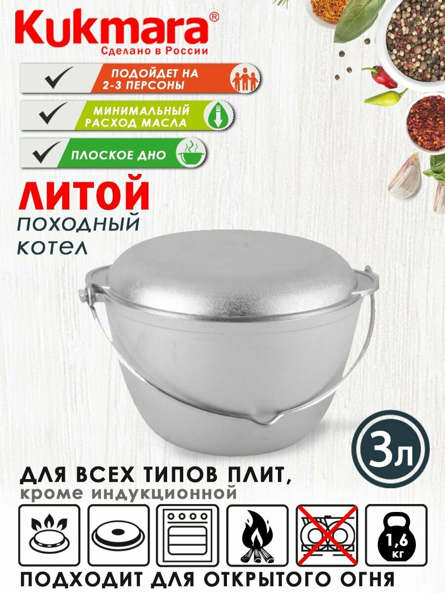 KUKMARA Котел походный, 3 л, алюминиевая крышка, литые ручки
