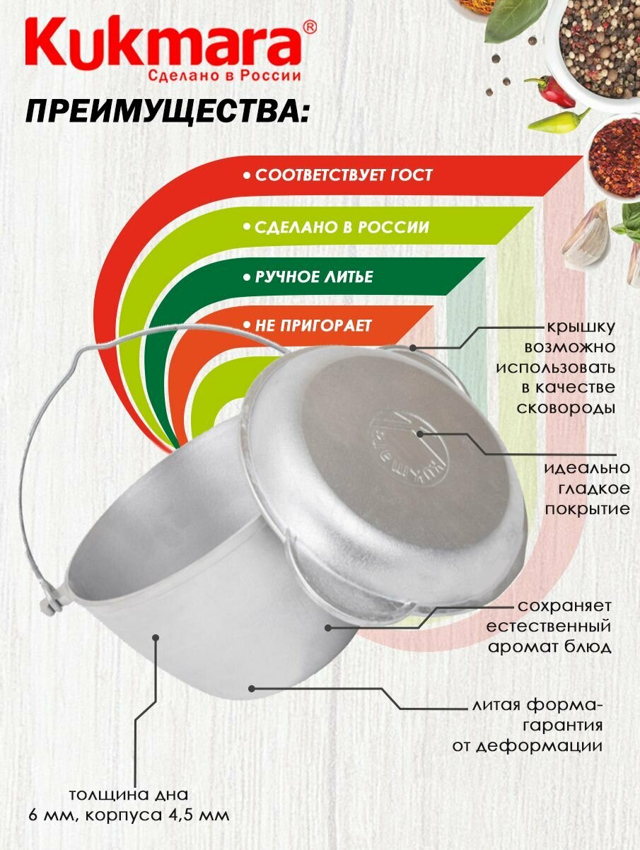 Котел алюм. литой походный с крышкой 3,0л с дужкой, Крышка-Сковорода Kukmara кп30 (Кукмор) *1/5