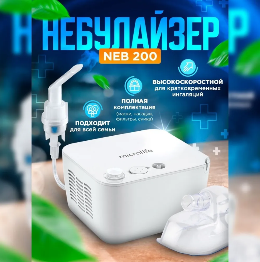 Ингалятор медицинский компрессорный с принадлежностями NEB 200 Microlife, семейный, маски для взрослых, детей