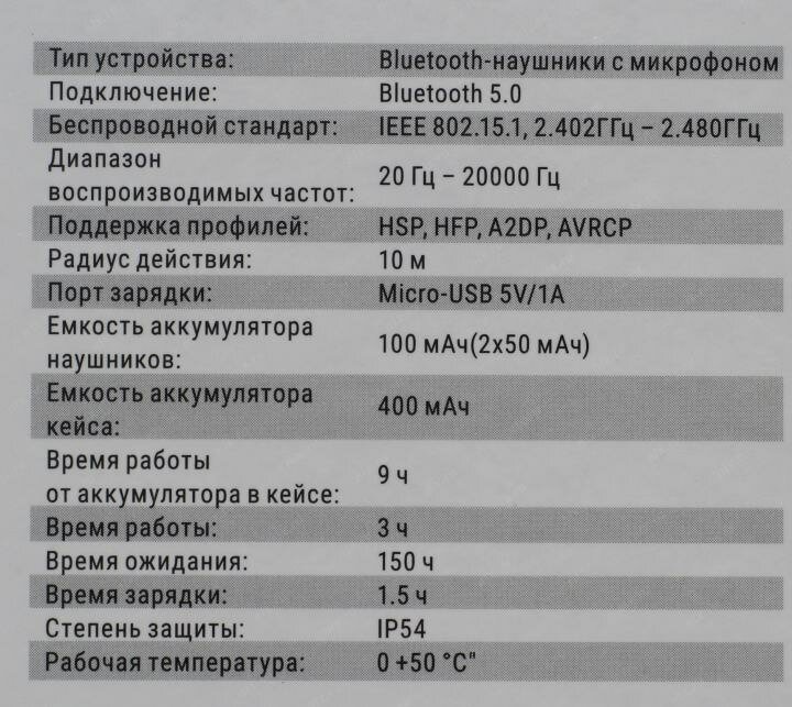 | Плюсы: | Наушники хорошие, звук мощный и басов хватает. Сенсорные кнопки на наушниках есть, блютуз 5.0 соединение не прерывается. Чехол компактный. Шумоизоляция отличная |