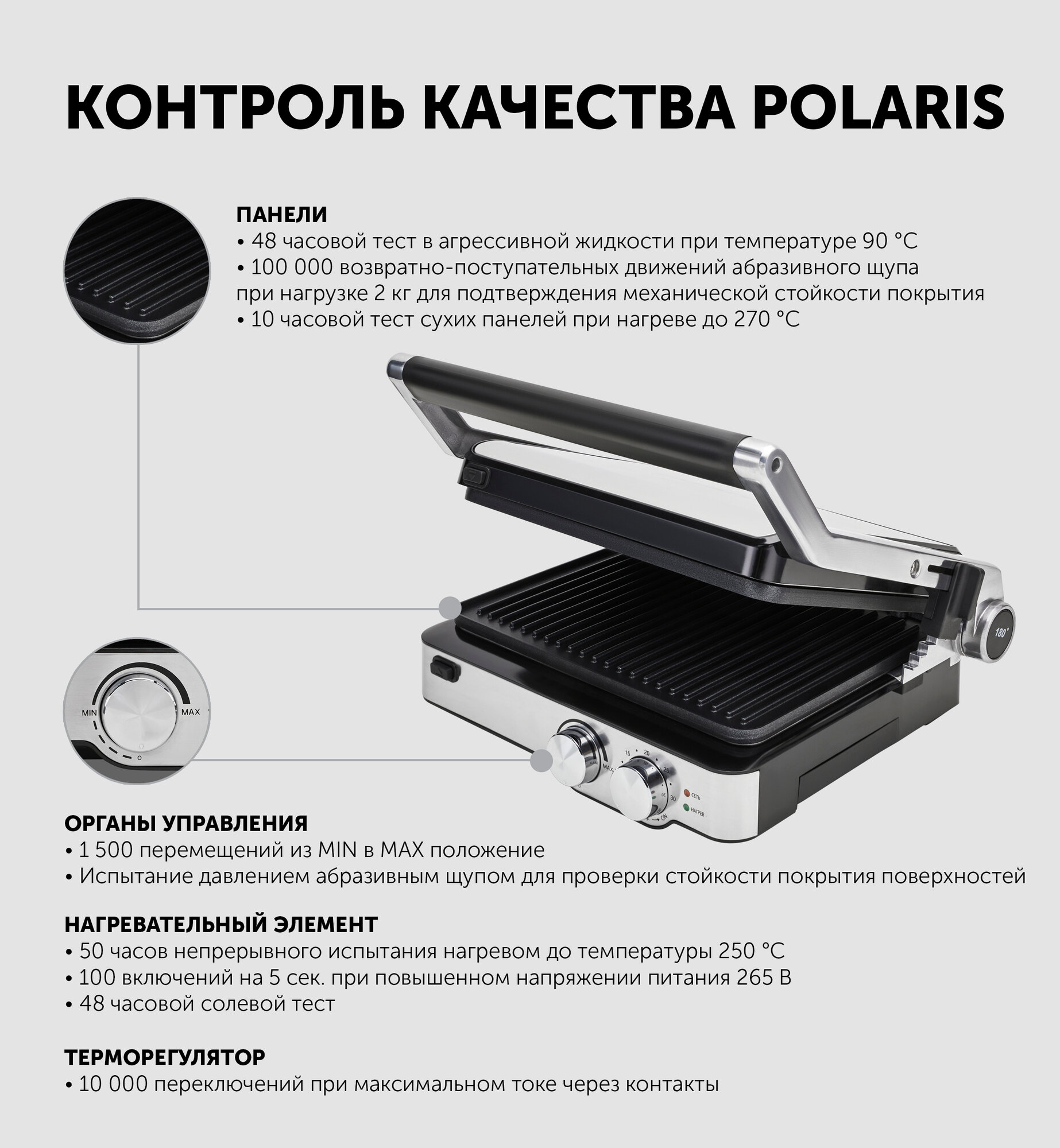 Электрогриль, Polaris, электронное управление, ТЭН, серебристого цвета