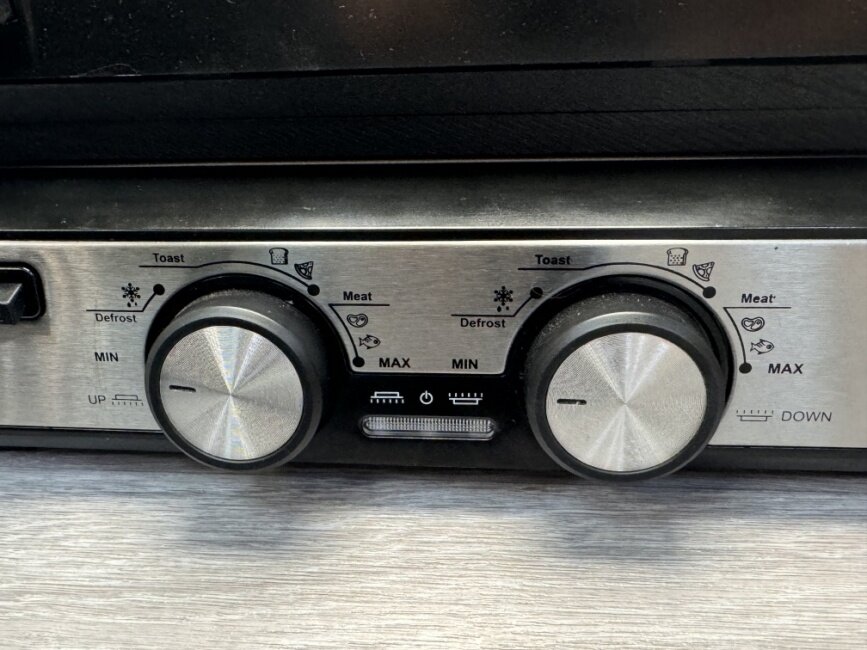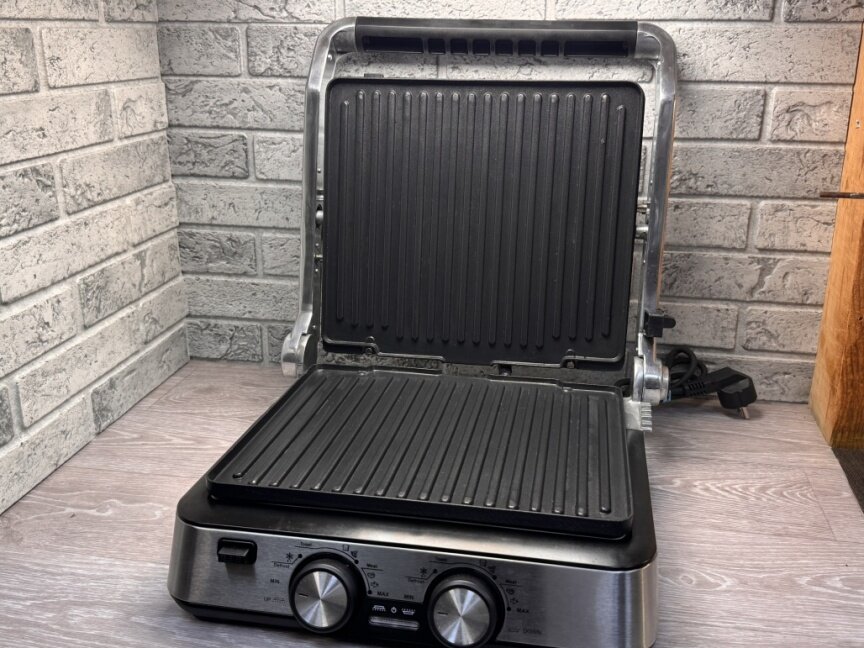 Удобные съемные панели. Можно жарить на двух плоскостях,развернув крышку на 180градусов!Для домашнего пользования вполне удачный выбор. Недорого! Недостатки: Отсутствуют. |