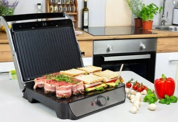 Электрогриль DOMFY Metal DSM-EG502, черный и серебристый