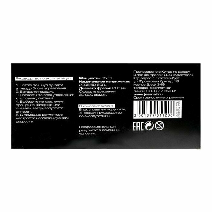 Машинка для маникюра и педикюра JessNail JD200 PRO, 35 Вт, 30000 об/мин JessNail 2928913 .