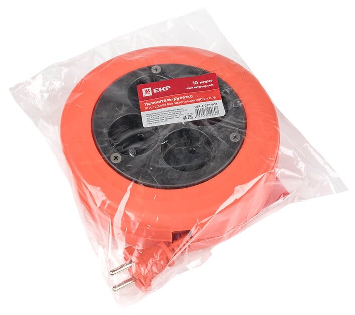 Удлинитель-рулетка EKF 4x10м, без заземления, ПВС 2x0,75, 10А/2,3кВт, PROxima SQ UBR-6-257-4-10 . интересное: