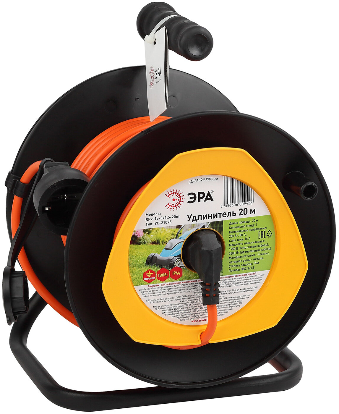 Удлинитель силовой Эра RPx-1e-3x1.5-20m (б0046837) 3x1.5кв.мм 1розет. 20м ПВС 16A катушка оранжевый