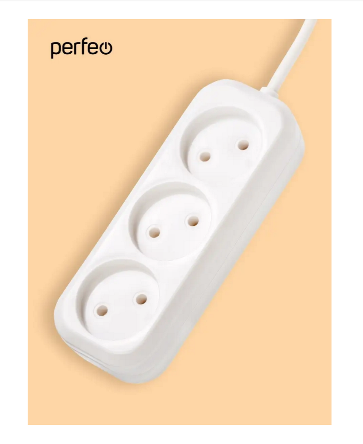 Сетевой удлинитель без заземления Perfeo RU POWER 5,0м, 3 розетки, белый