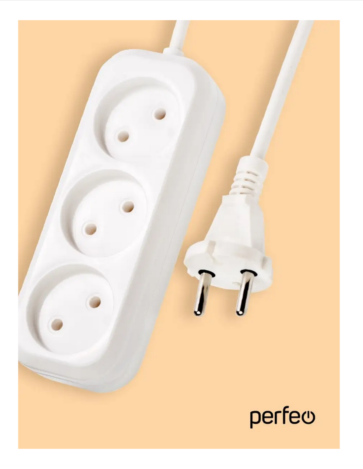 Сетевой удлинитель Perfeo без заземления "RU POWER", 5,0м, 3 розетки, белый (PF_B4063)
