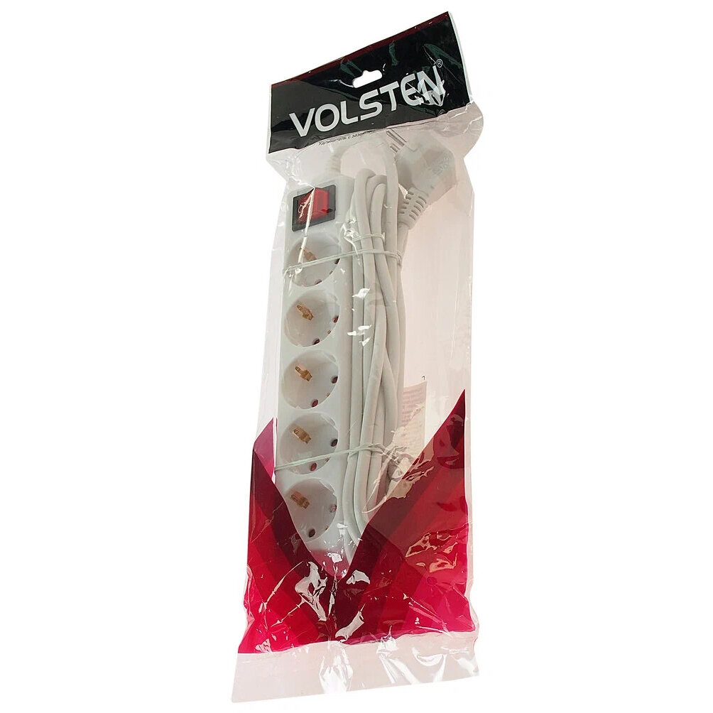 Удлинитель бытовой Volsten 9331 с заземлением и выключателем, 5 гнезд, 3 м, 10 А, 2200 Вт, белый