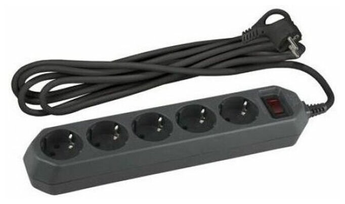 Сетевой фильтр ЭРА USF-5es-5m-B с базовой защитой с заземлением с выключателем 5 розеток 5м 10А чер