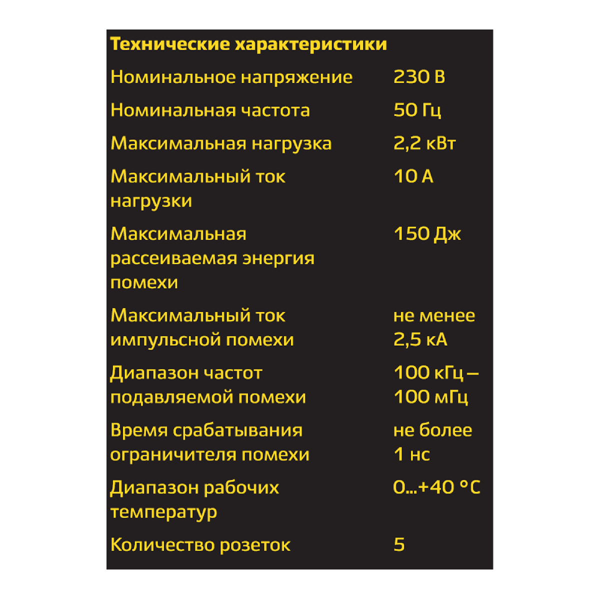 Фильтр сетевой VEKTOR LITE 5 без заземления 5м черный