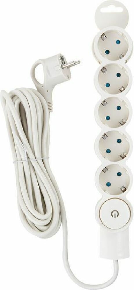 Удлинитель с заземлением Duwi 5 гнезд с выключателем, белый, 5м