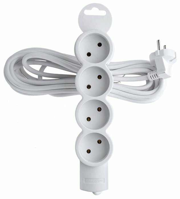 | Плюсы: | Удобный удлинитель на 4 розетки, кабель двухметровой длинны. Вилки держатся надежно, не выскакивают.