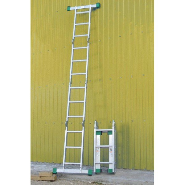 Новая высота Лестница-трансформер 3-х секционная 3×7 ступеней, 3×1,9 м, высота 4,5 м, нагрузка 150 кг, алюминий, новая высота