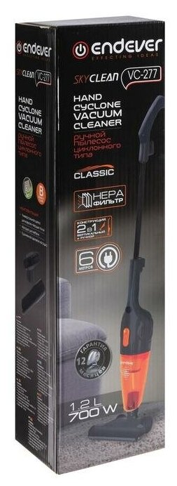 Пылесос Endever SkyClean VC-277, вертикальный, 700 Вт, 1.2 л, темно-серый/оранжевый