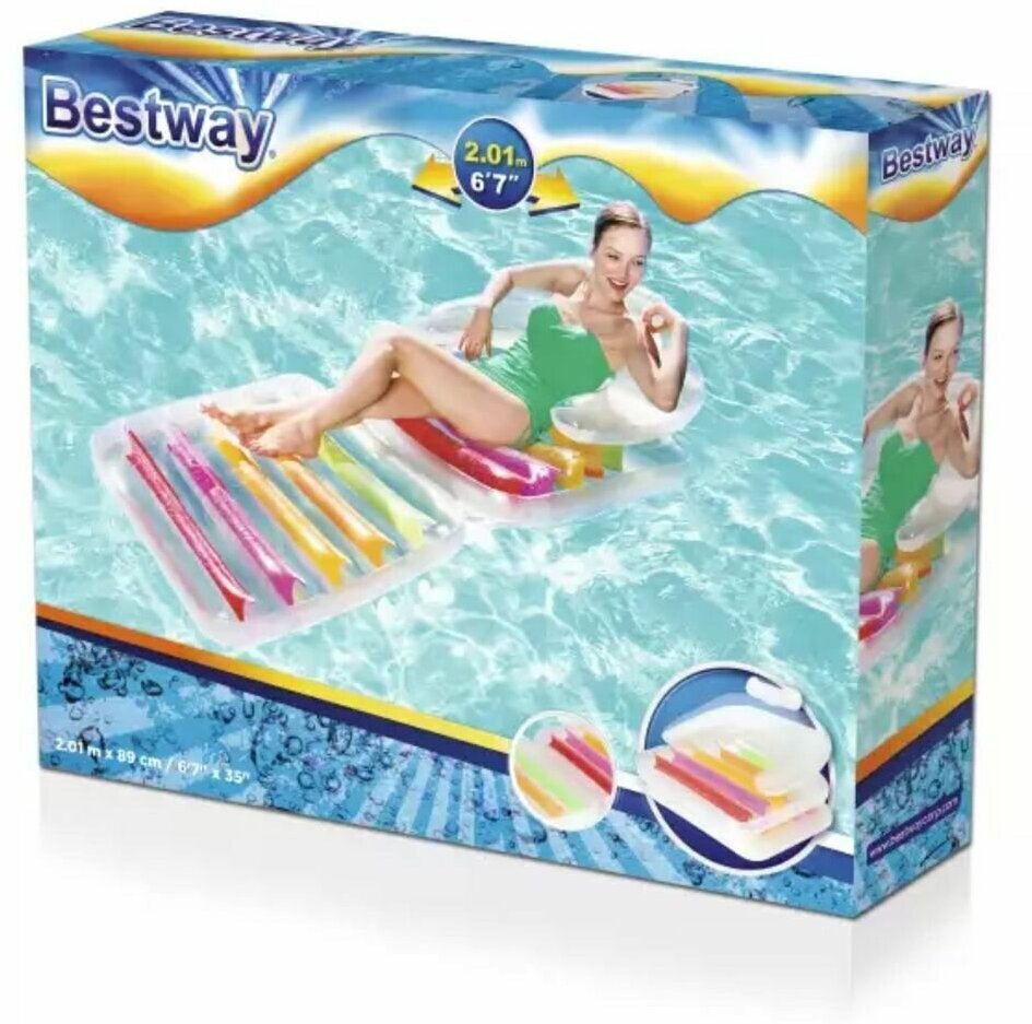 Надувной матрас шезлонг для плаванья разноцветный 89x201 см / Bestway 43023