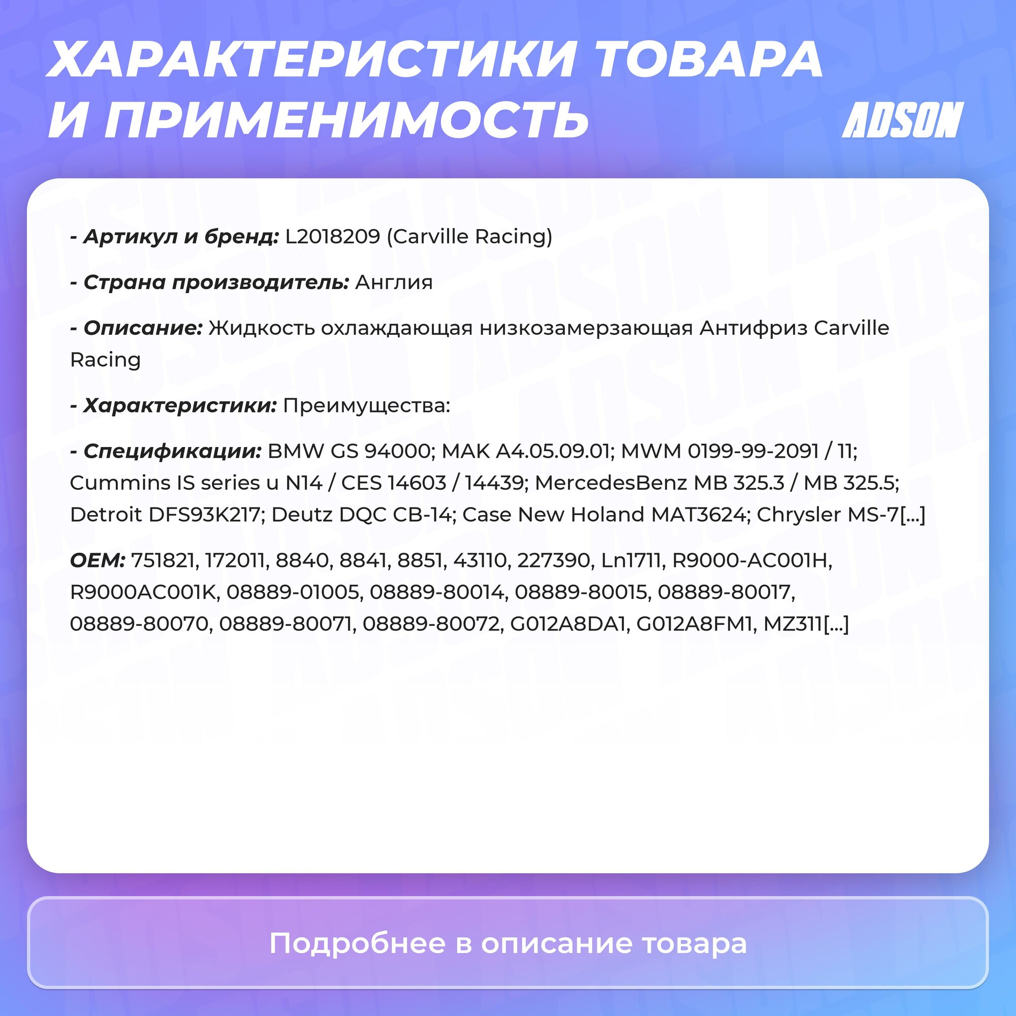 СохранитьАнтифриз Carville Racing арт. L2018209 интересное: