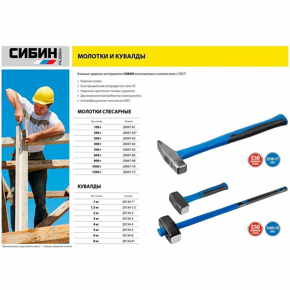 СохранитьМолоток СИБИН 500 г 20047-05 интересное: