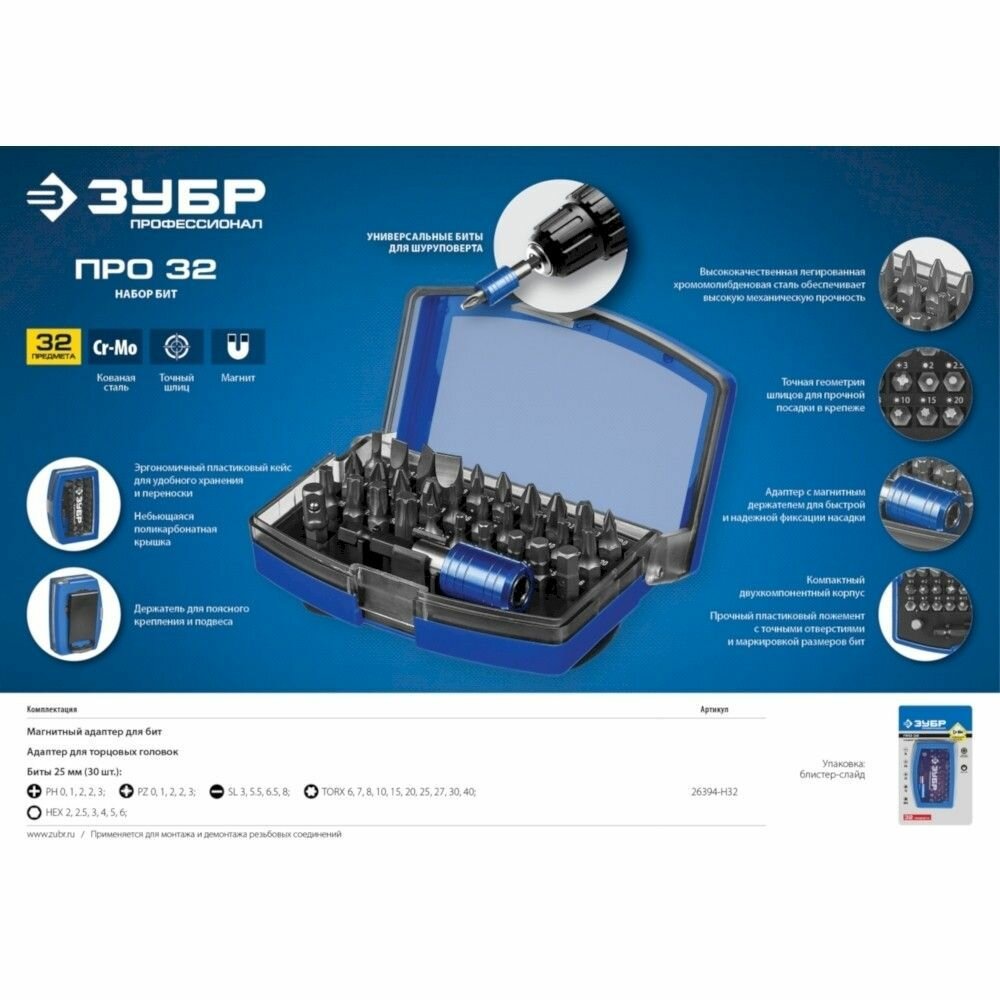 Набор : Биты Зубр "ПРО-32", CR-Mo, в боксе 26394-H32