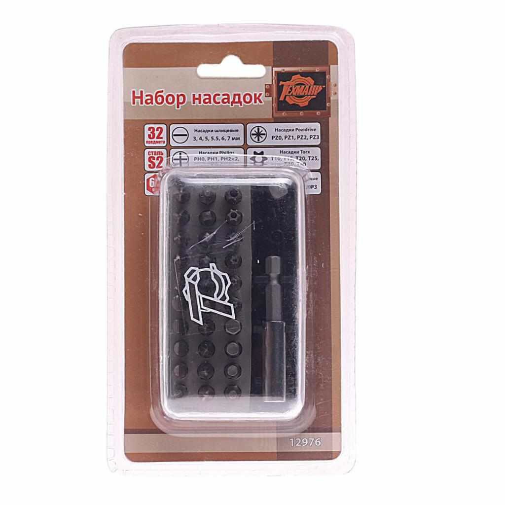 Набор бит 1/4" 32 предмета с магнитным адаптером, 12976, техмаш