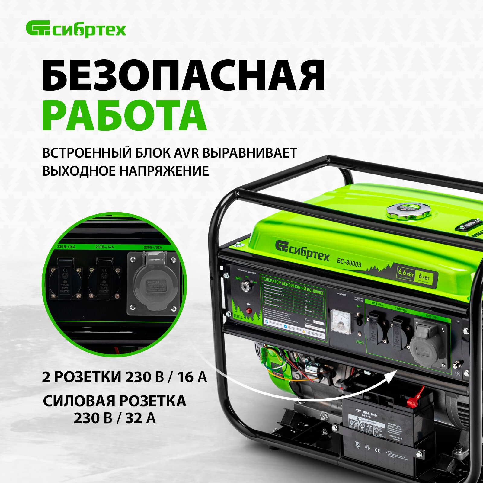 Бензиновый генератор СИБРТЕХ БС-8000Э, 230, 6.6кВт
