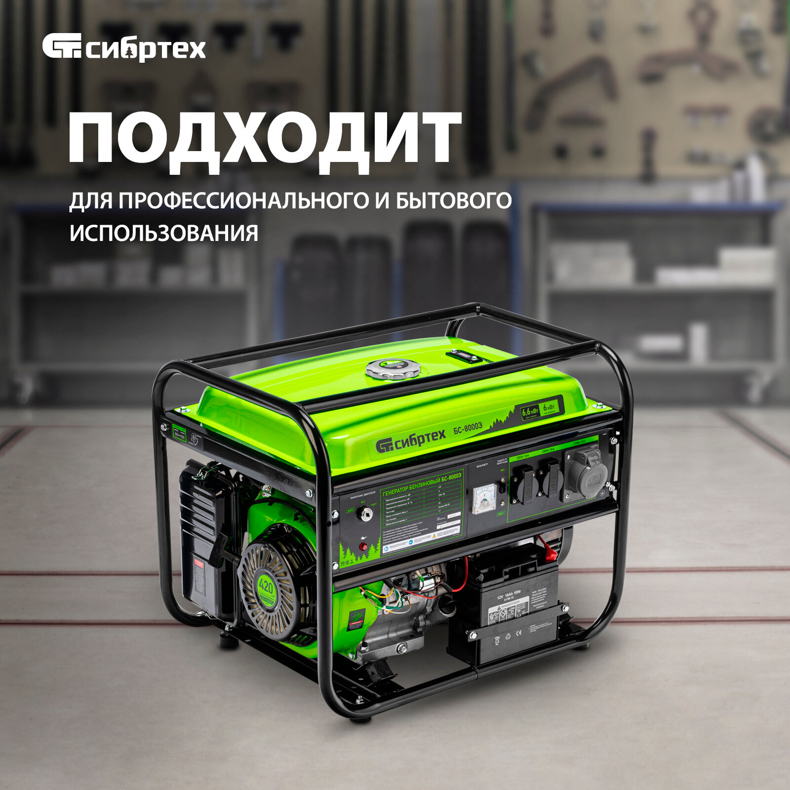 Генератор Сибртех БС-8000Э, 6.6 кВт