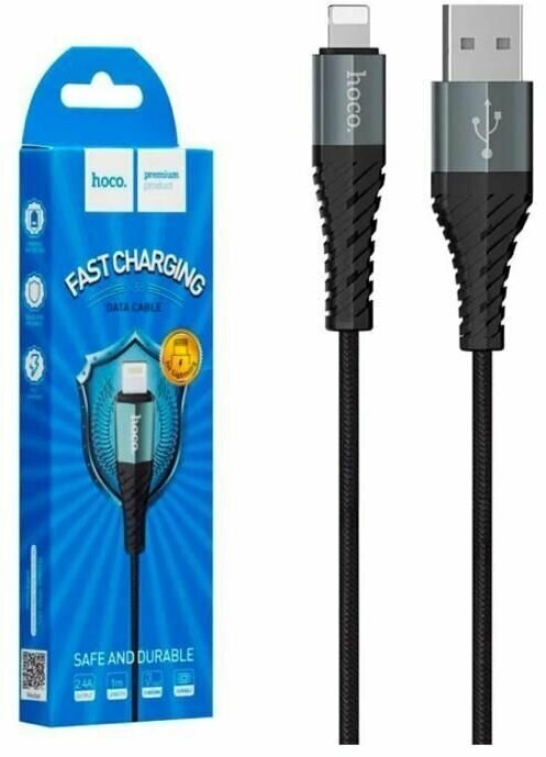 Кабель USB2.0 Am Lightning Hoco X38 2.4A Black, черный - 1 метр