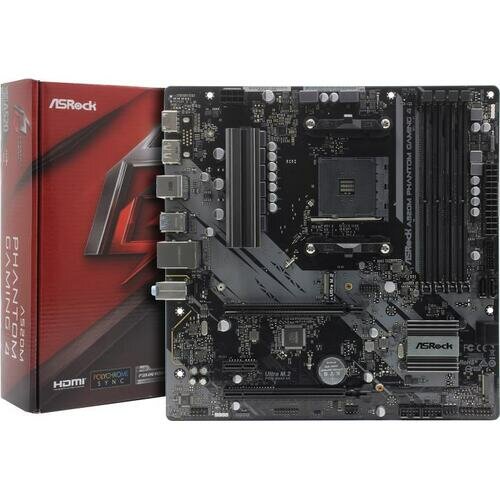 Материнская плата ASRock A520M PHANTOM GAMING 4 Socket AM4 AMD A520 4xDDR4 2xPCI-E 16x 1xPCI-E 1x 4 mATX Retail