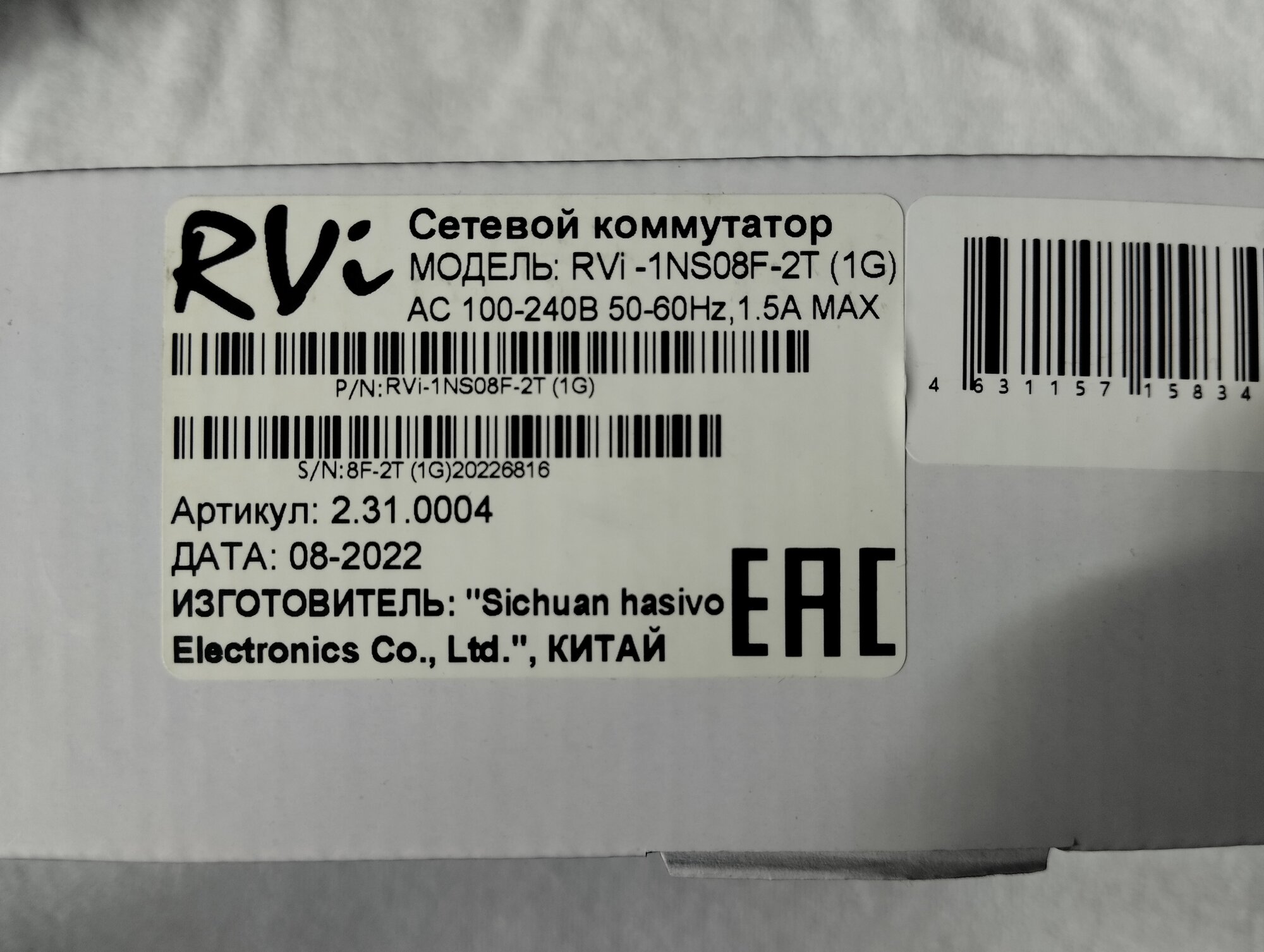 Коммутатор Rvi -1NS08F-2T