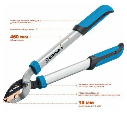 GRINDA PL-460A с алюминиевыми рукоятками, 460 мм, Большой контактный сучкорез (424516)