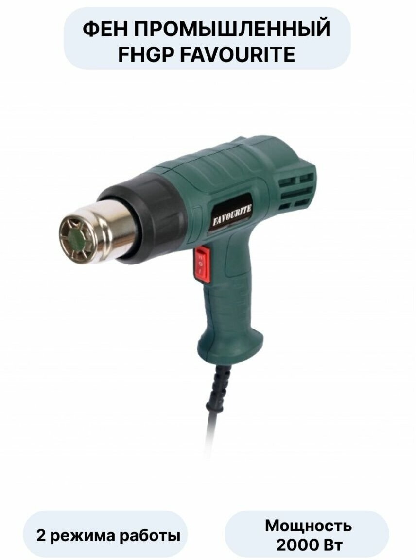 FAVOURITE Фен промышленный 2000 Вт 400-600 С 300-500 л-мин 2 режима работы FHGP 2000