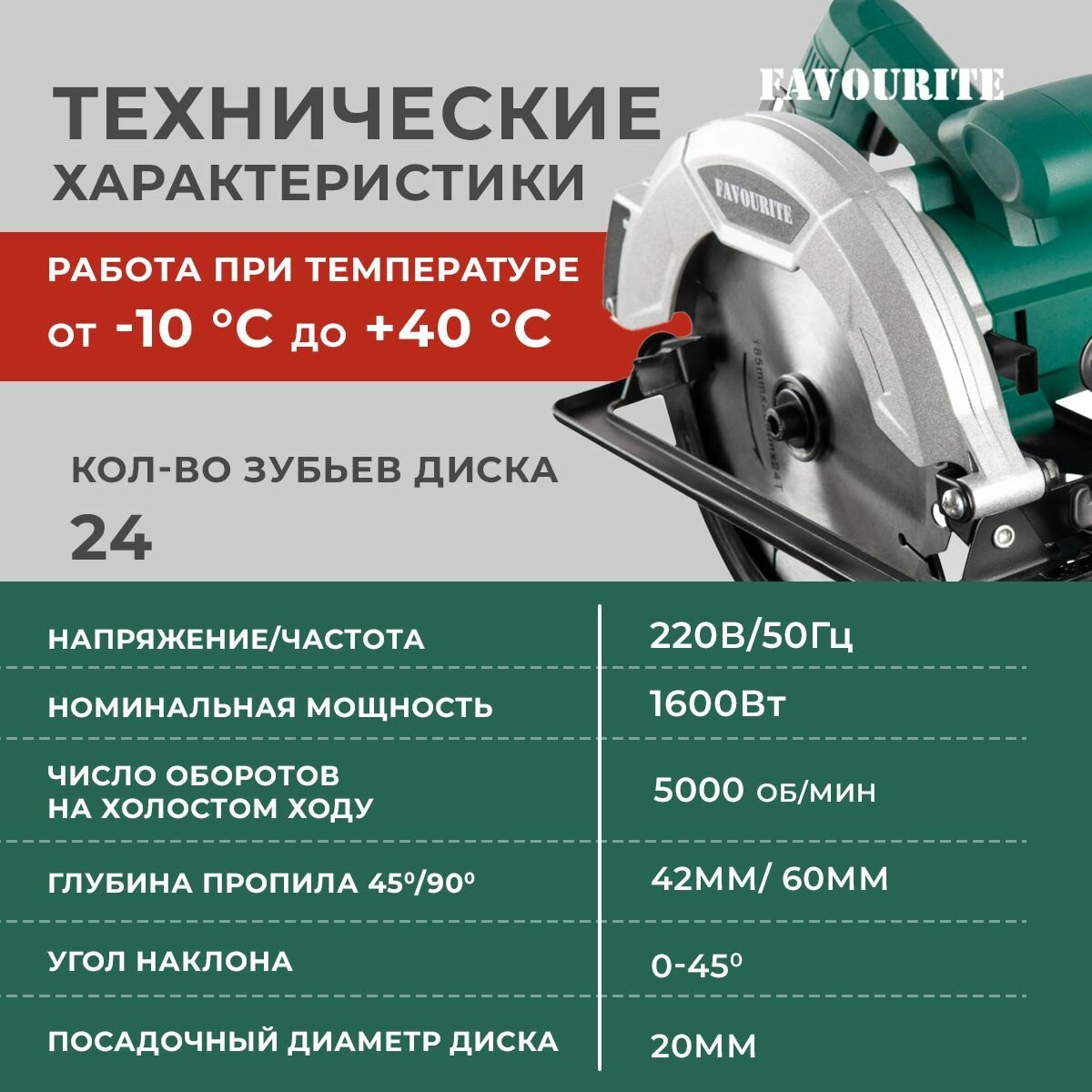Пила дисковая FAVOURITE FCS 185, 1600 Вт, 185 мм, 5000 об/мин