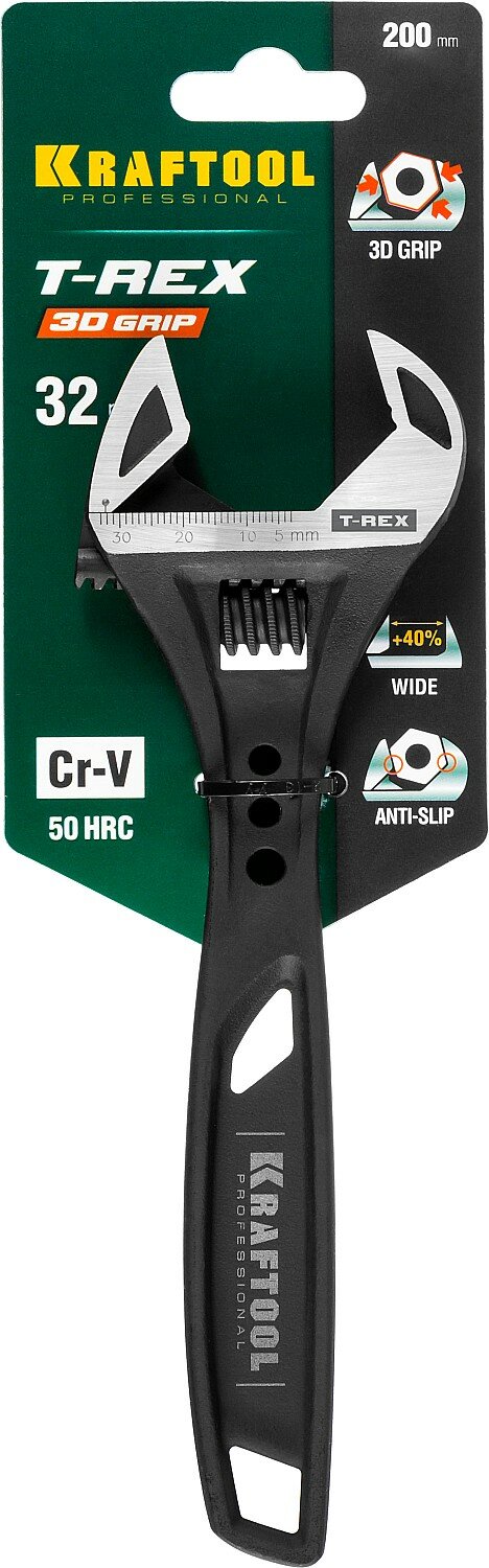 Ключ разводной силовой T-REX, 27254-20,KRAFTOOL 200/32 мм, Cr-V.