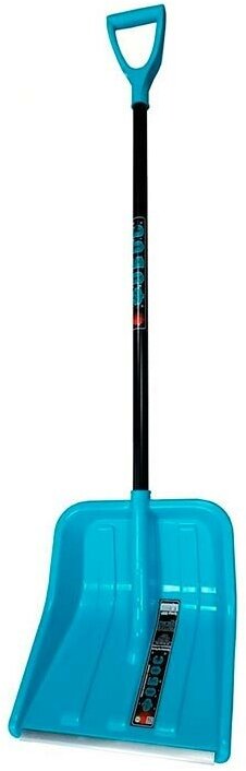 Лопата снеговая фобос пластик бирюзовая с планкой с алюминиевым черенком и V ручкой