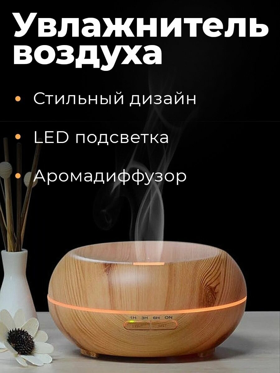 СохранитьАромадиффузор LuazON LHU-11, ультразвуковой, 300 мл, 4 режима, подсветка, цвет светл. дерево интересное: