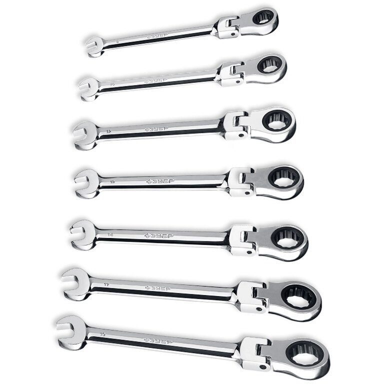 Набор комбинированных гаечных ключей трещоточных шарнирных 7 шт, 8 - 19 мм, ЗУБР