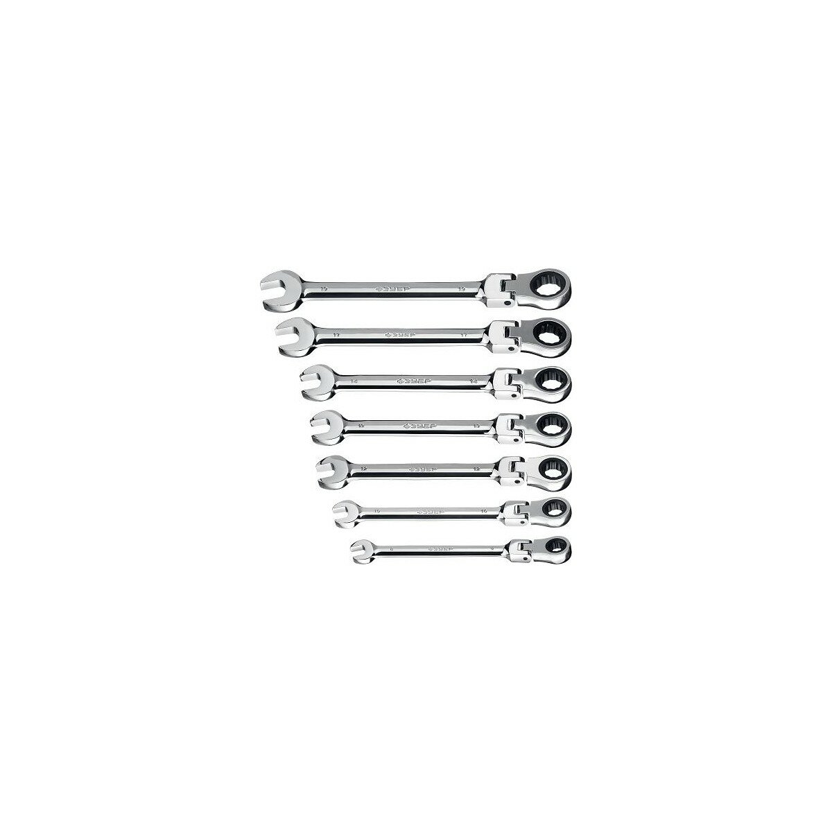 ЗУБР 7 шт, 8 - 19 мм, набор шарнирных трещоточных гаечных ключей, Профессионал (27101-H7)
