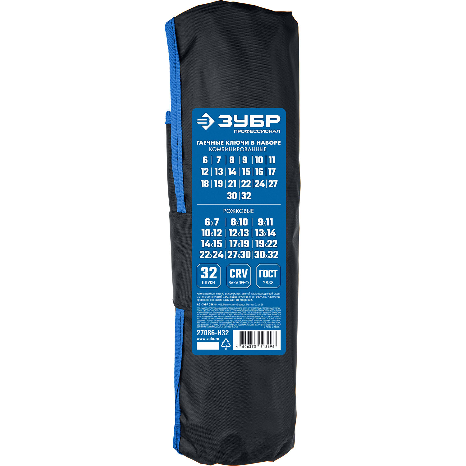 ЗУБР 32 шт, 6-32 мм, набор комбинированных и рожковых гаечных ключей 27086-H32 Профессионал