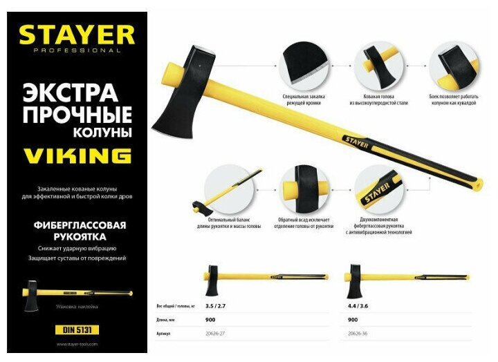 Колун Stayer Viking, 900 мм, 3,5 кг, 20626-27