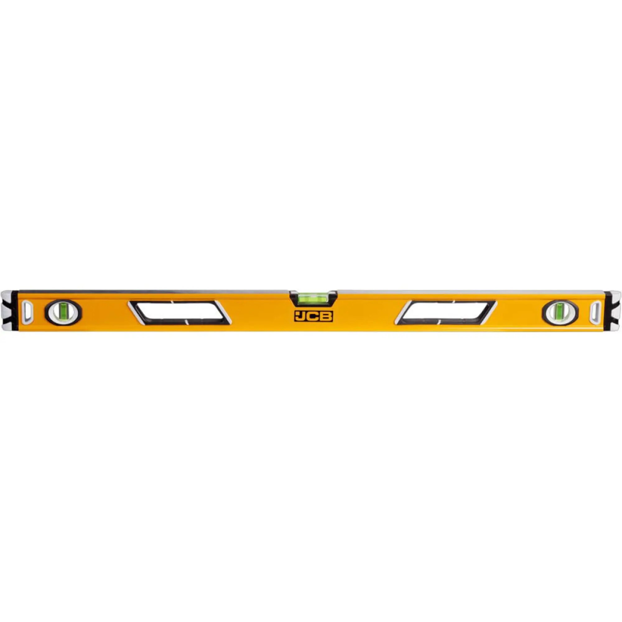 Уровень JCB коробчатый, магнитный, 2 фрезерованные базовые поверхности, 3 ампулы, крашенный, с ручками, 0,5мм/м, 90см