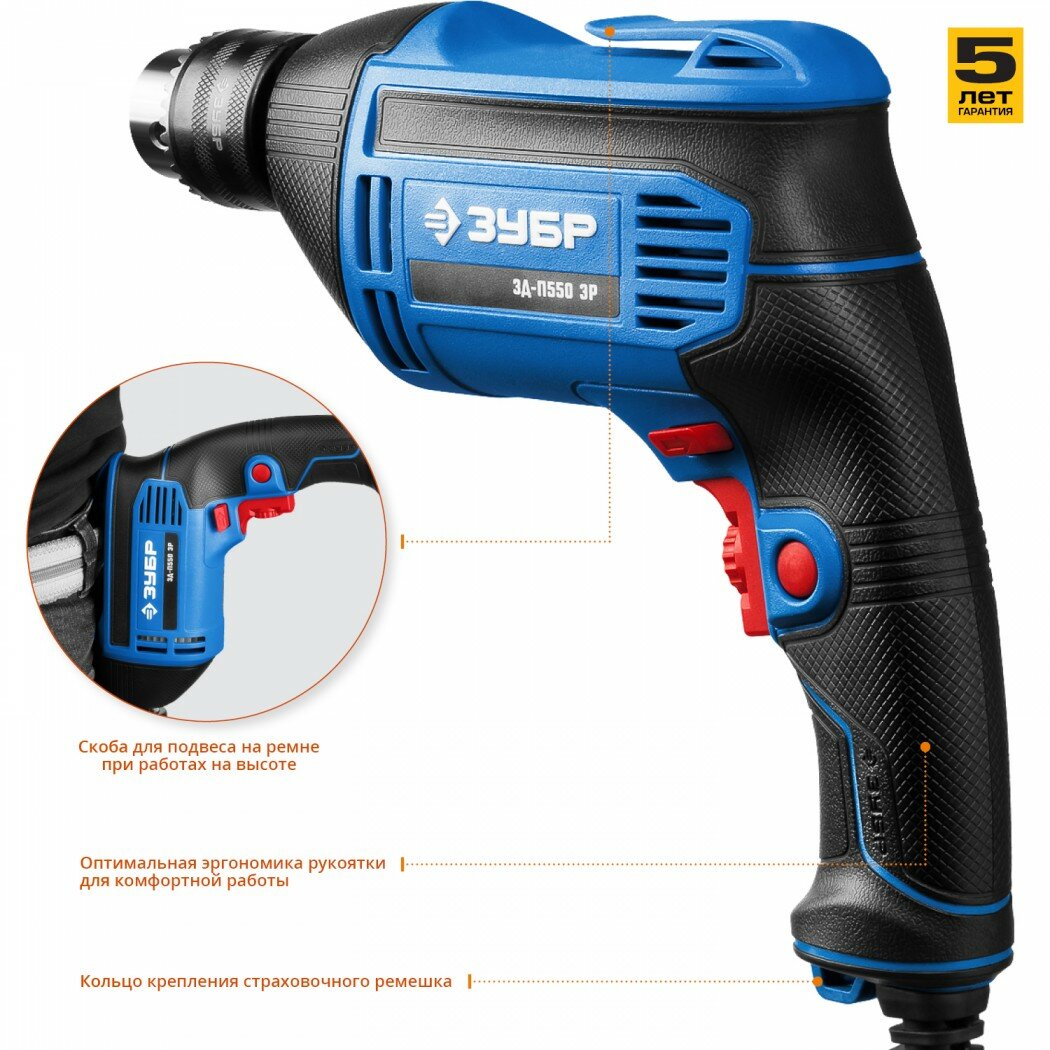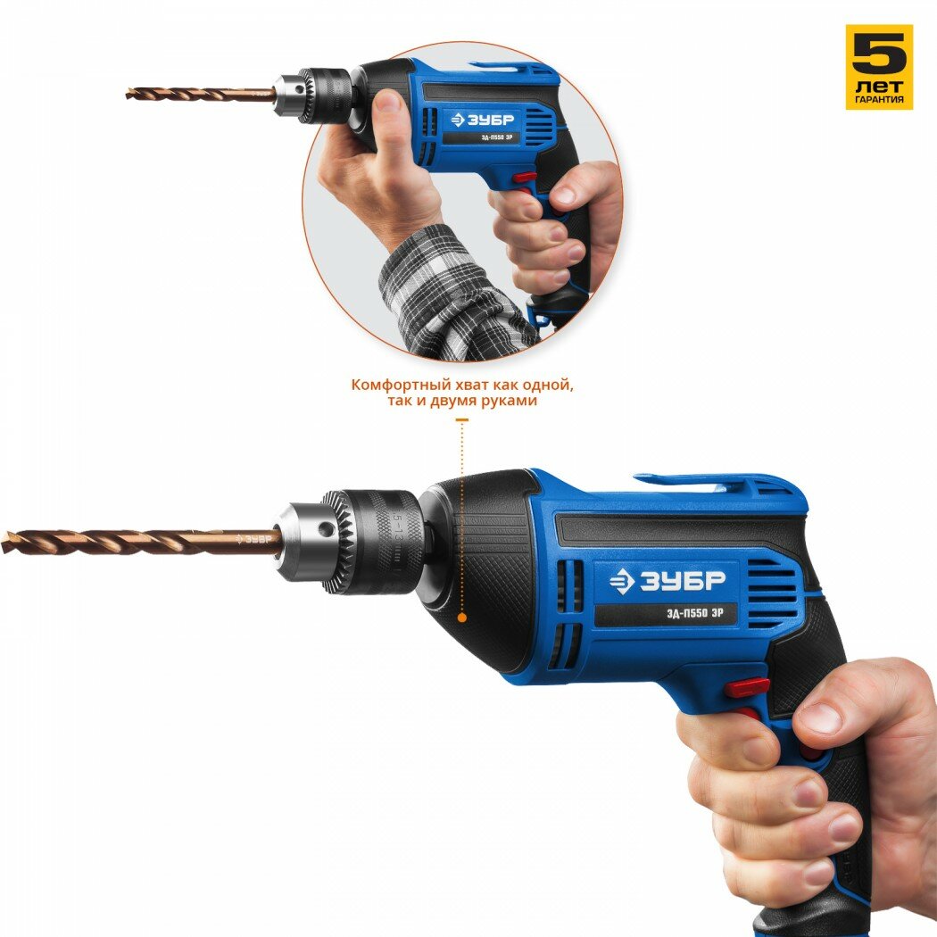 ЗУБР 550 Вт безударная дрель, серия Профессионал