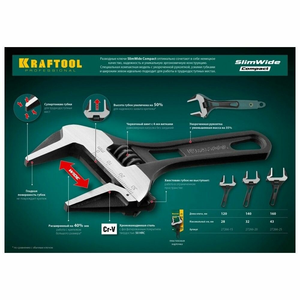 СохранитьКлюч разводной KRAFTOOL SlimWide-K 27266-25 интересное: