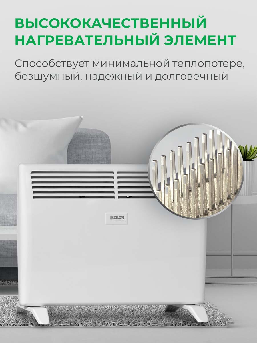 Электрический конвектор ZILON ZHC-1000 A2.0, до 15 кв.м.