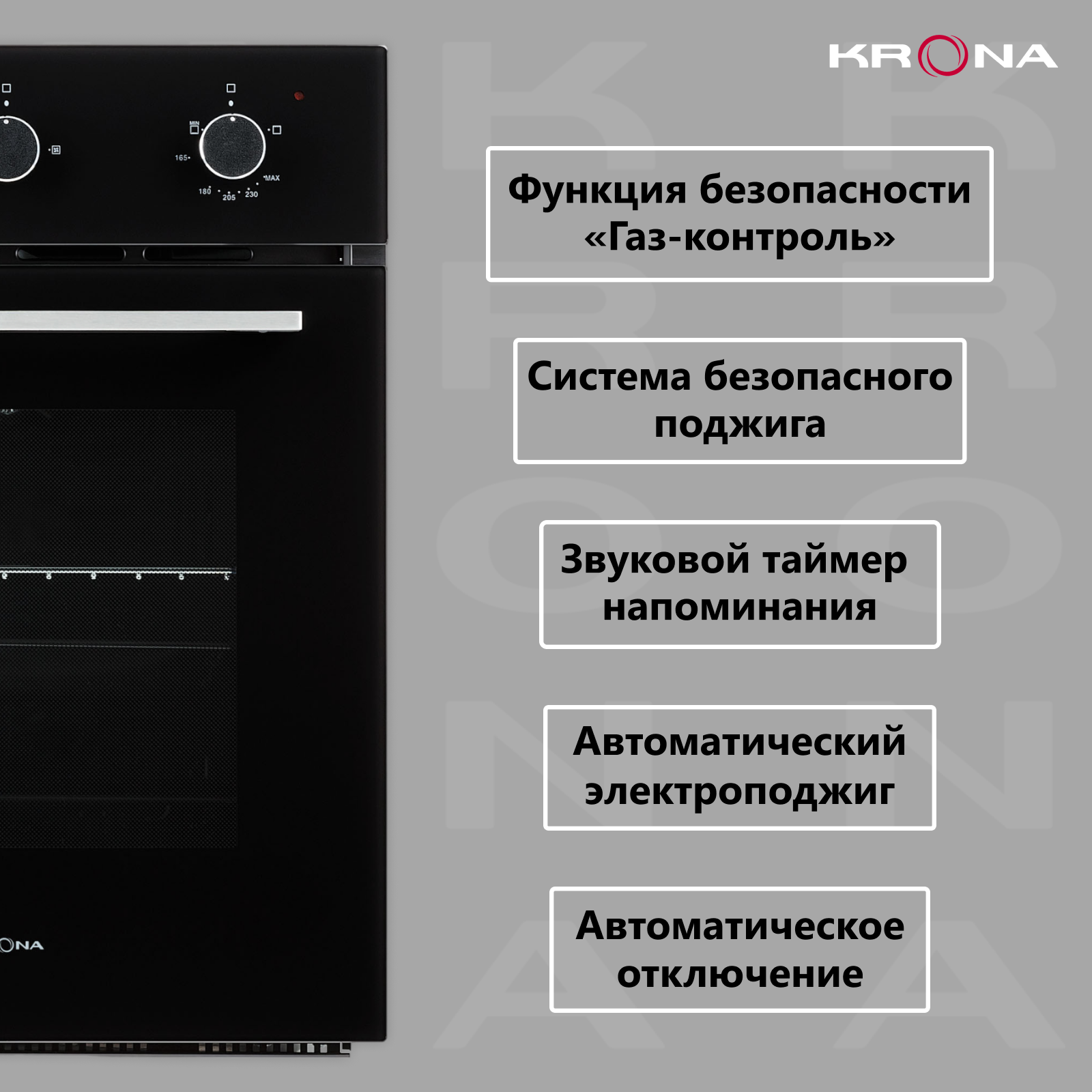 Встраиваемый газовый духовой шкаф Krona STRETTO 45 BL