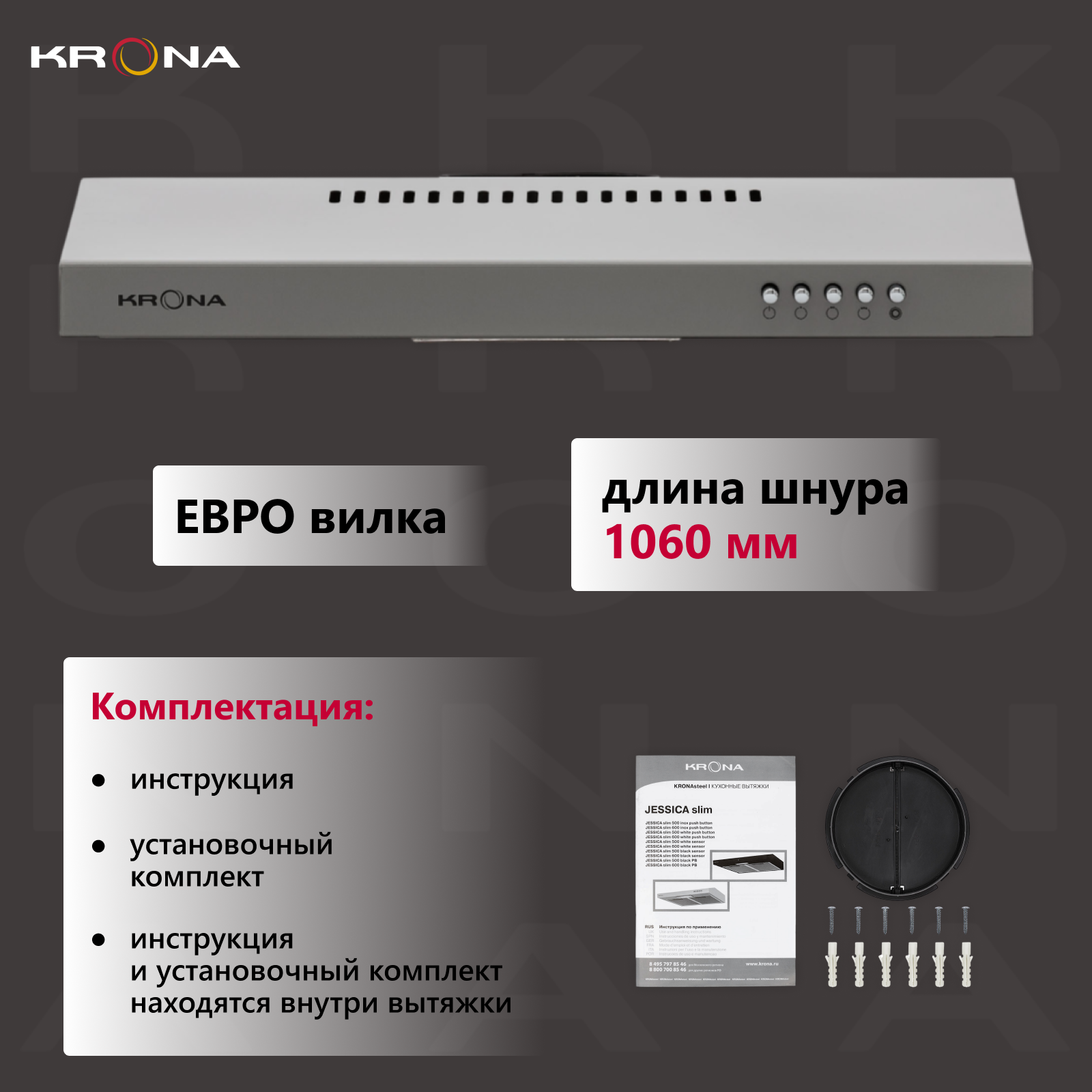 Вытяжка козырьковая Krona Jessica slim 500 металлик управление: кнопочное (1 мотор)