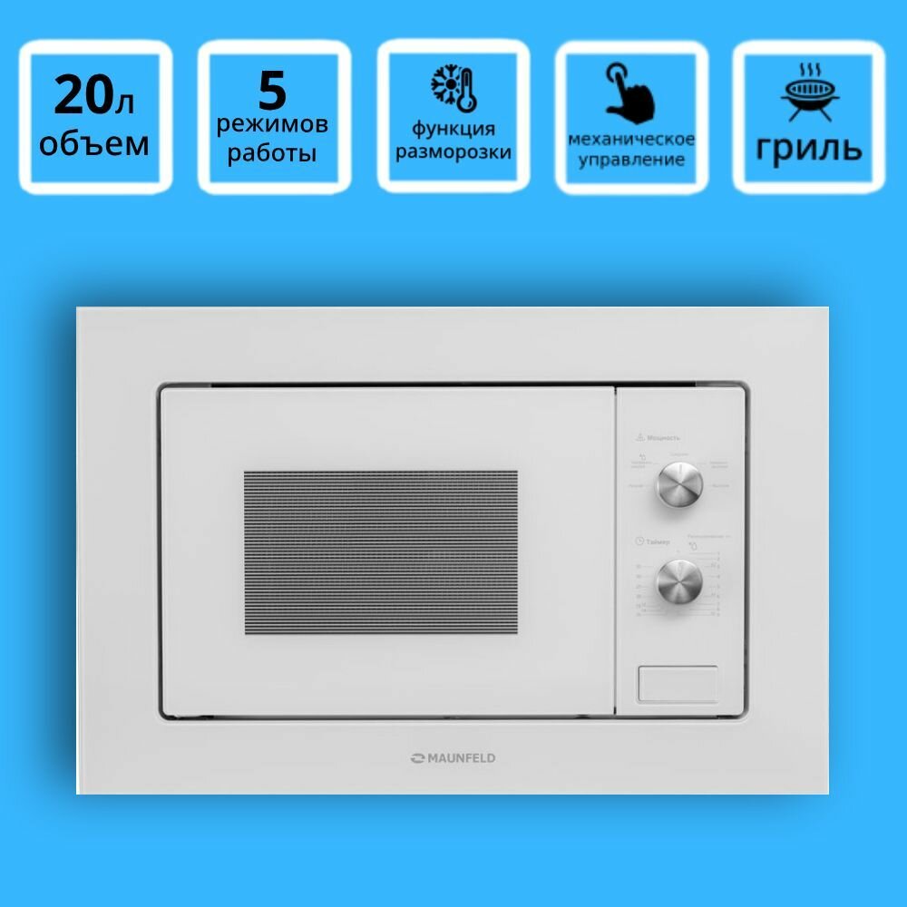 Микроволновая печь MAUNFELD MBMO.20.1PGW, встраиваемая, 20л, 800Вт, белый [ка-00013588]